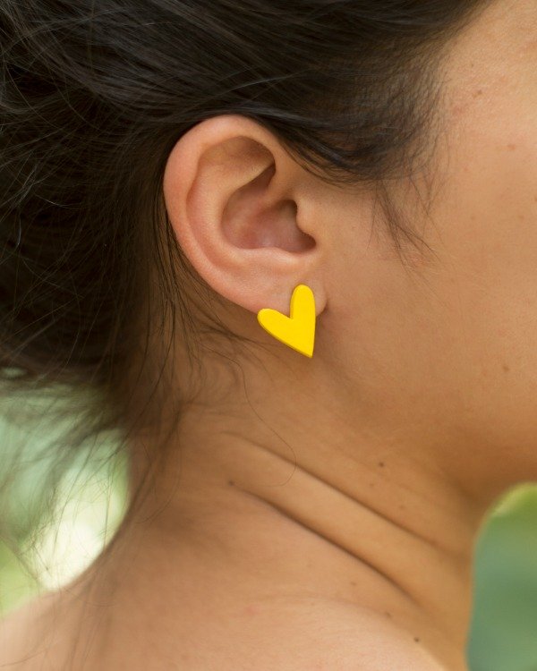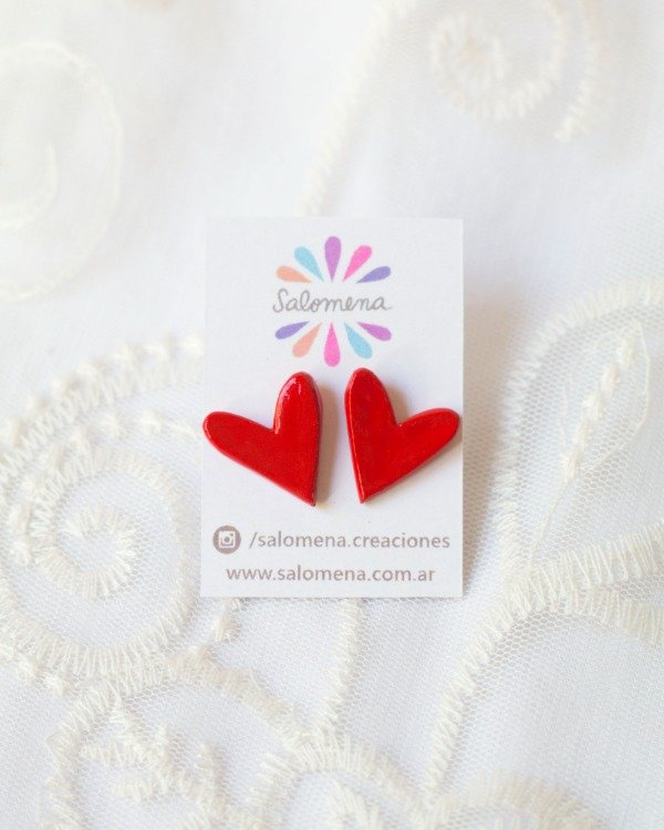 Par de aretes hechos a mano en porcelana fría, pintados y barnizados. Pasantes de acero quirúrgico.