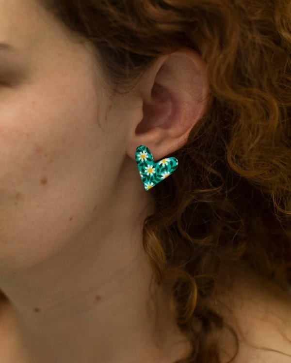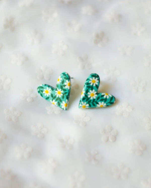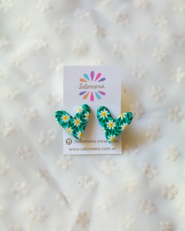 Par de aretes hechos a mano en porcelana fría, pintados y barnizados. Pasantes de acero quirúrgico.