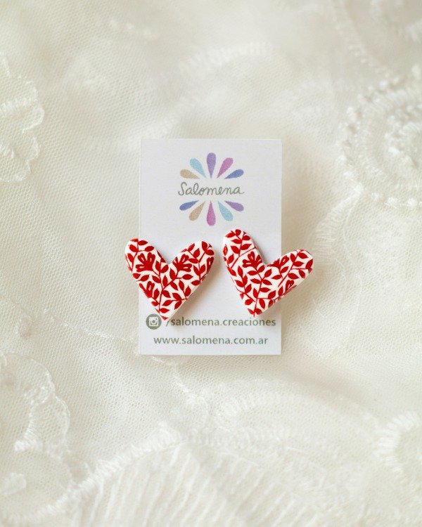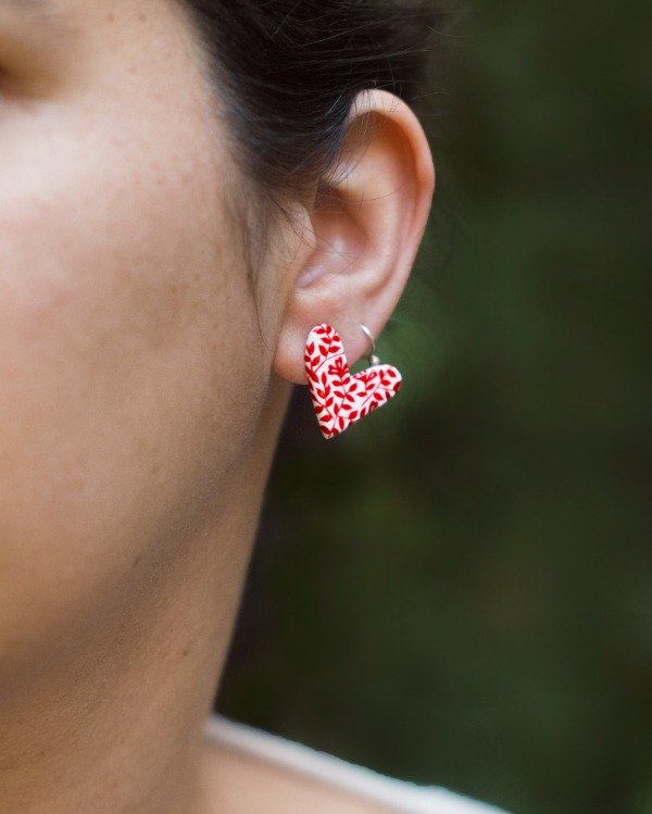 Par de aretes hechos a mano en porcelana fría, pintados y barnizados. Pasantes de acero quirúrgico.