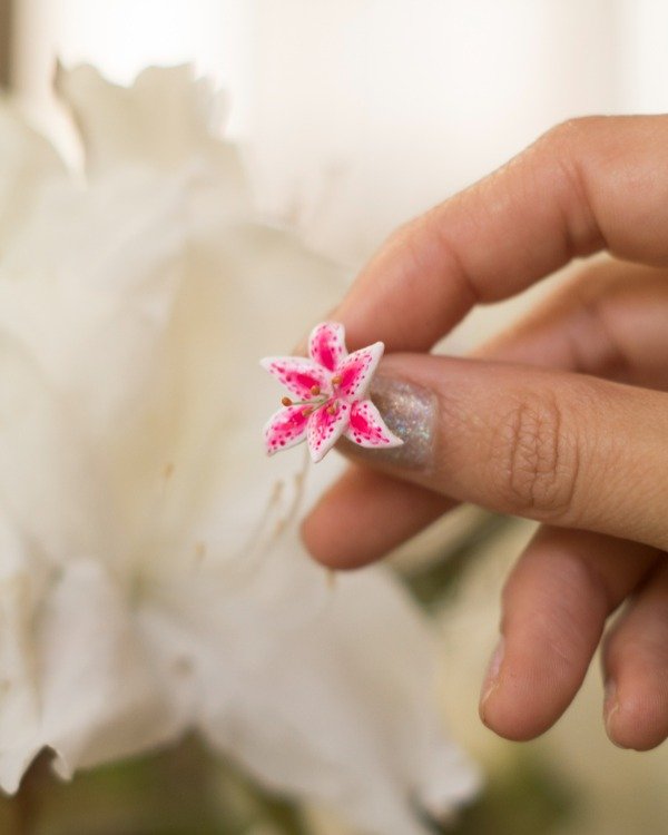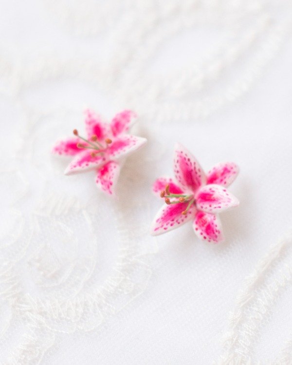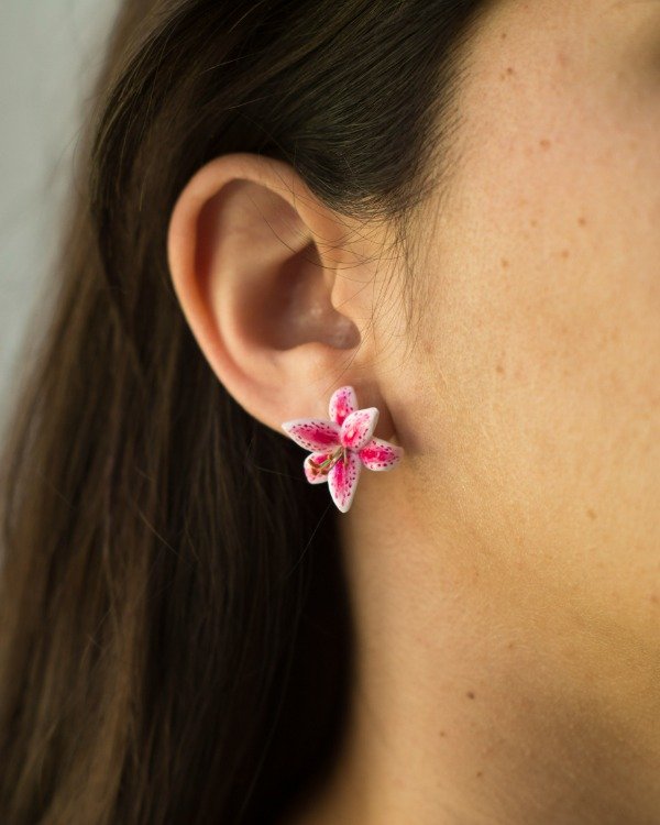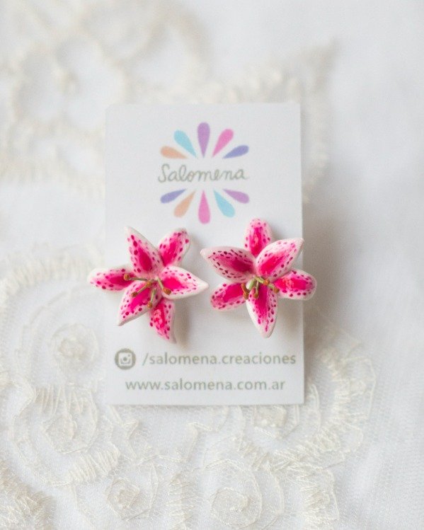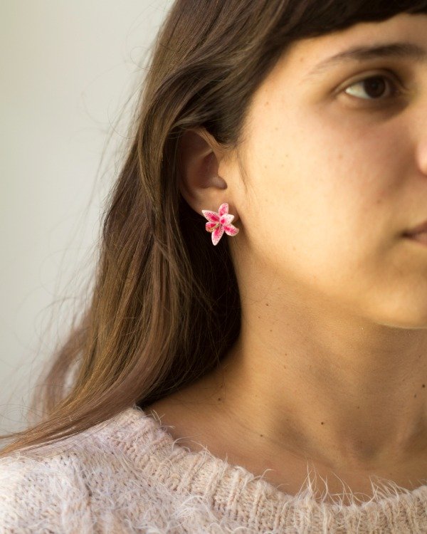 Aretes hechos a mano en porcelana fría, pintados y barnizados. Pasantes de acero quirúrgico.