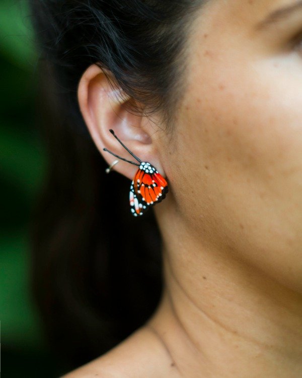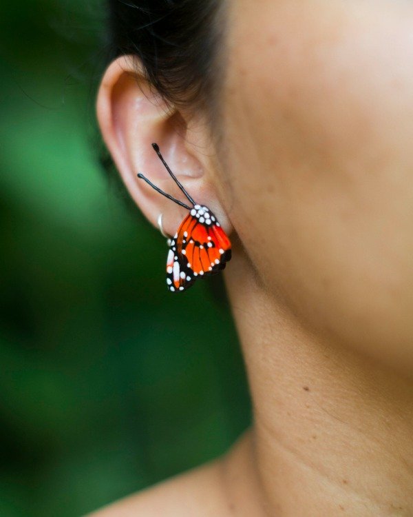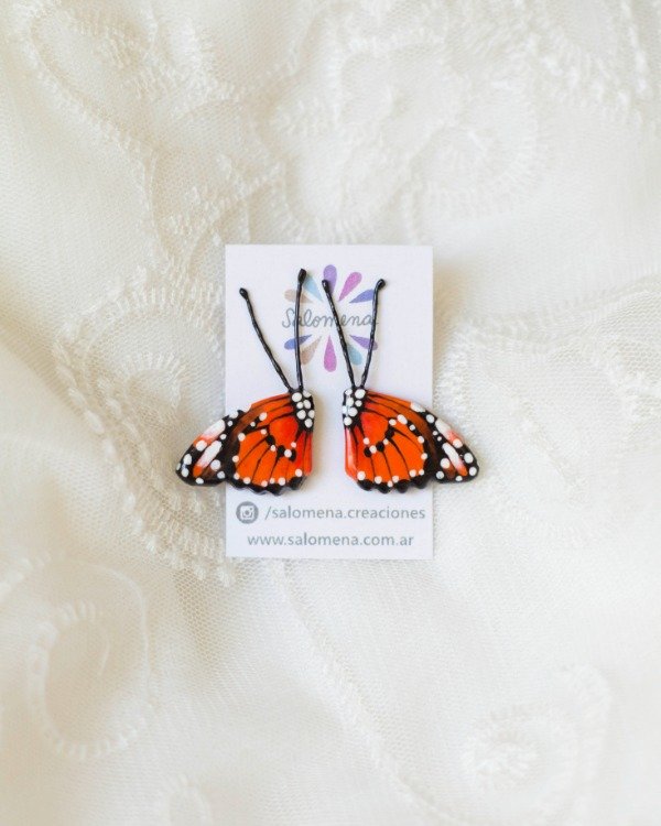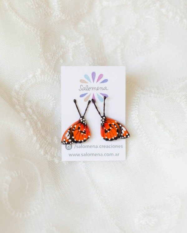 Par de aretes hechos a mano en porcelana fría, pintados y barnizados. Pasantes de acero quirúrgico.