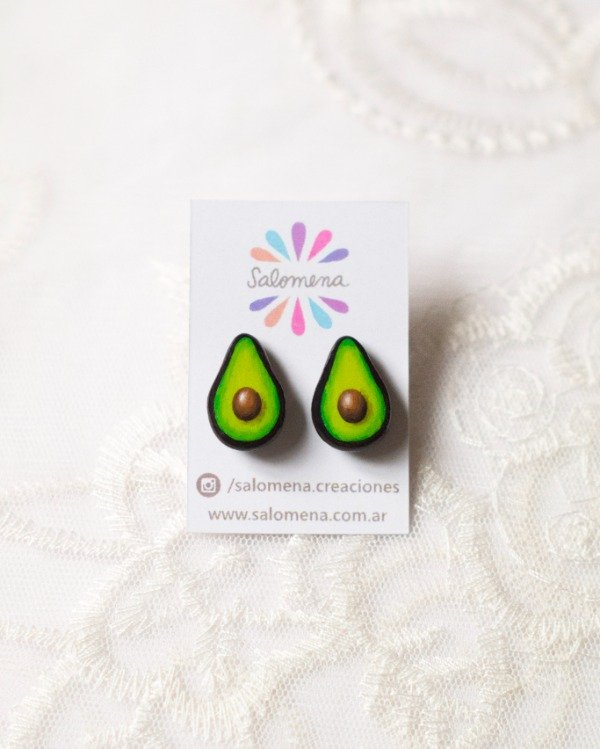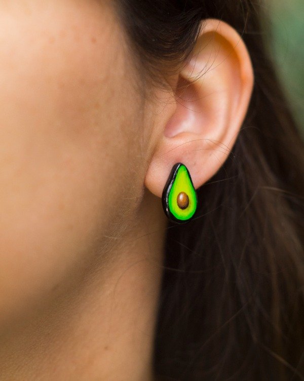 Par de aretes hechos a mano en porcelana fría, pintados y barnizados. Pasantes de acero quirúrgico.