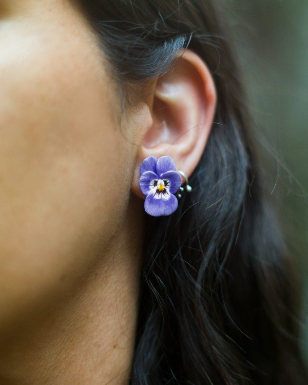 Par de aretes hechos a mano en porcelana fría, pintados y barnizados. Pasantes de acero quirúrgico.