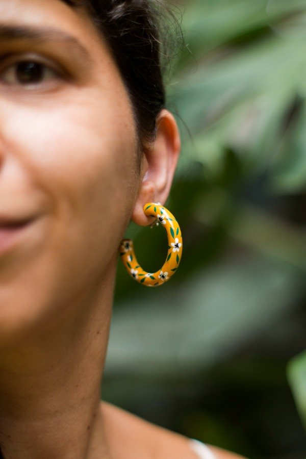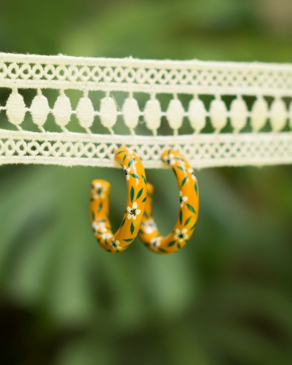 Par de aros tipo hoops modelados en porcelana fría con pasantes de acero quirúrgico.