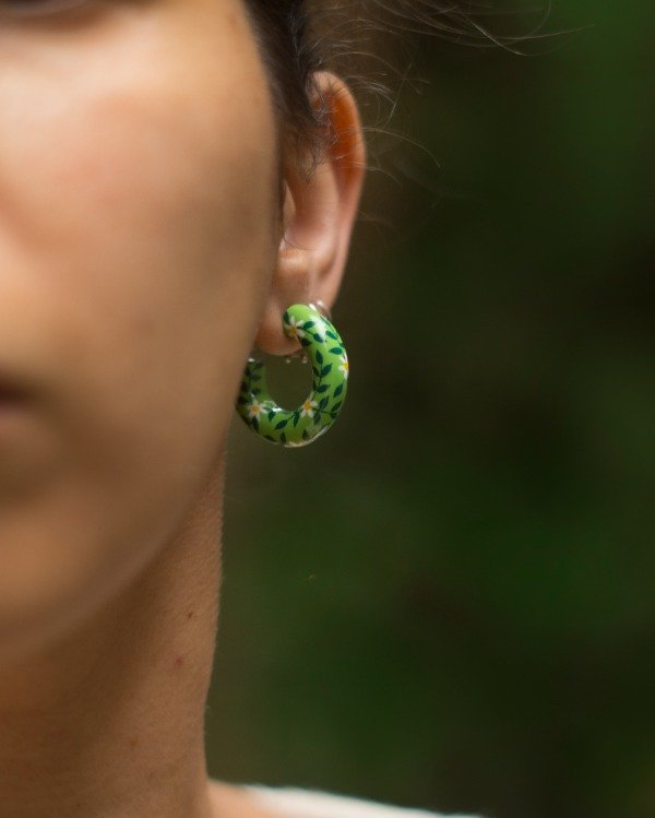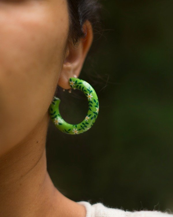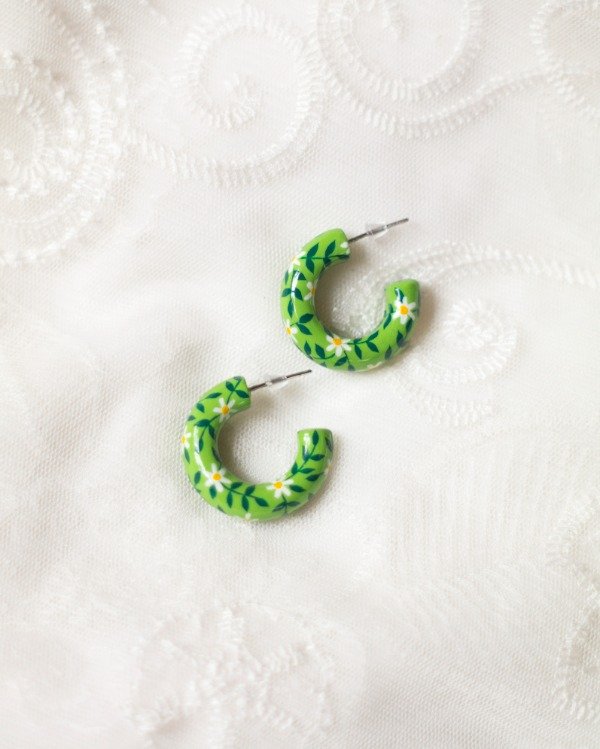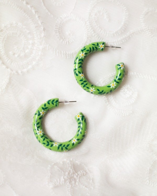 Par de aros tipo hoops modelados en porcelana fría con pasantes de acero quirúrgico.