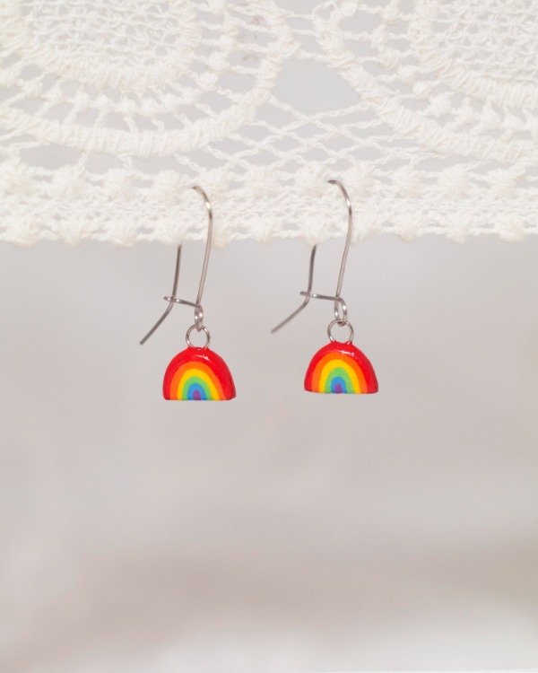 Par de aros hechos a mano en porcelana fría, pintados y barnizados. Ganchitos de acero quirúrgico.