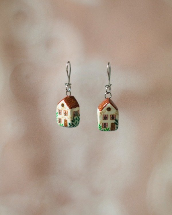 Par de aros pendientes hechos a mano en porcelana fría, pintados y barnizados. Ganchitos de acero quirúrgico.