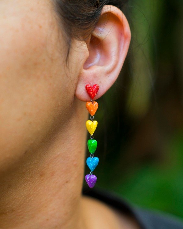 Par de aros hechos a mano en porcelana fría, pintados con glitter y barnizados. Pasantes de acero quirúrgico.