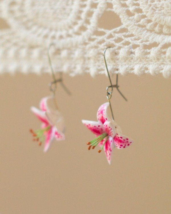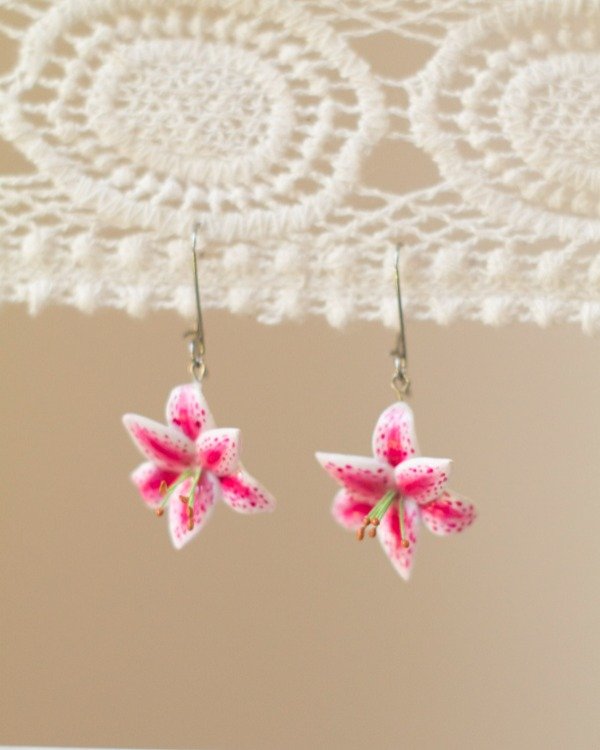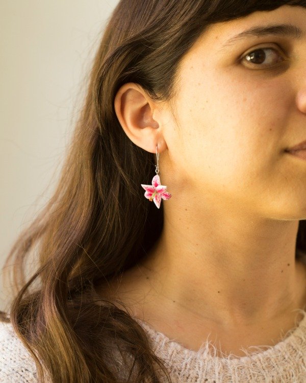 Par de aros hechos a mano en porcelana fría, pintados y barnizados. Ganchito de acero quirúrgico.