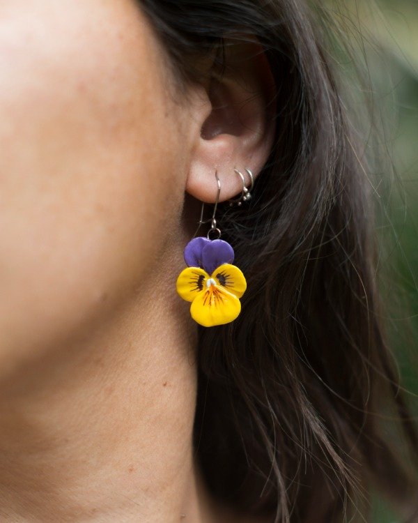 Par de aros hechos a mano en porcelana fría, pintados y barnizados. Ganchitos de acero quirúrgico.