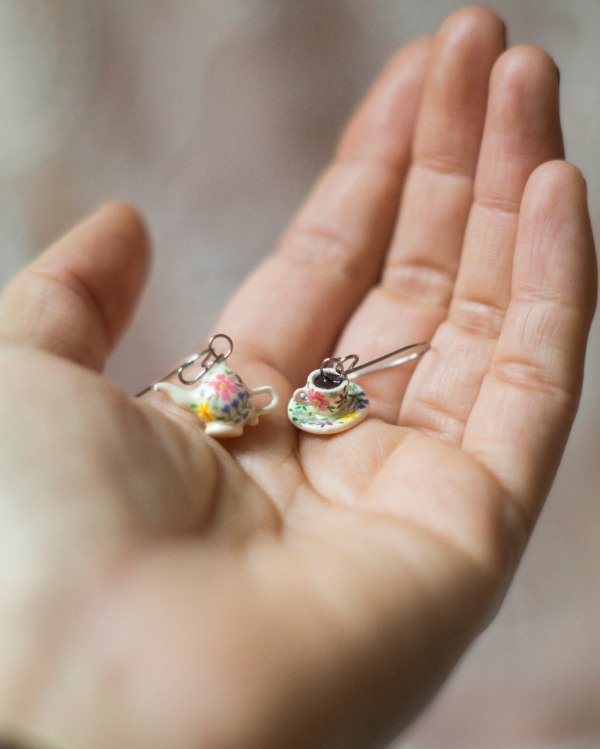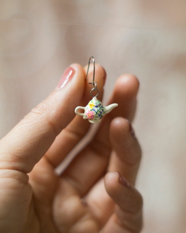 Par de aros pendientes hechos a mano en porcelana fría, pintados y barnizados. Ganchitos de acero quirúrgico.