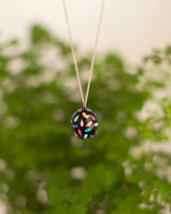 Dije modelado en porcelana fría, pintado y barnizado. Pasante de acero quirúrgico. Incluye un collar de hilo de algodón (colores disponibles: negro, marrón, beige, nude)