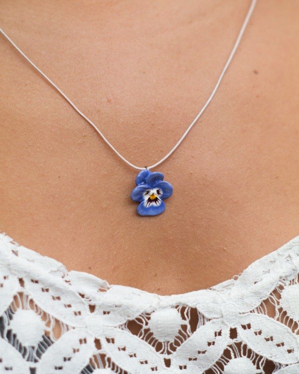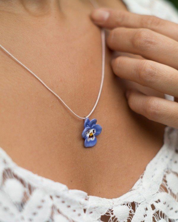 Dije modelado en porcelana fría, pintado y barnizado. Pasante de acero quirúrgico. Incluye un collar de hilo de algodón (colores disponibles: negro, marrón, beige, nude)