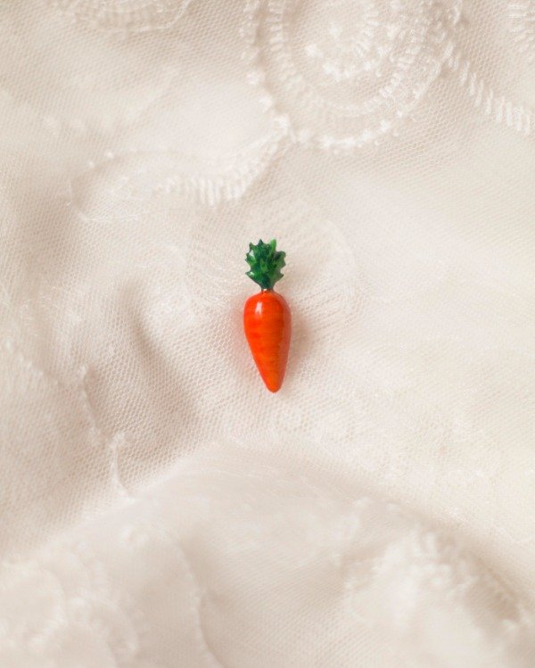 Prendedor modelado en porcelana fría, pintado y barnizado. Base de prendedor de acero quirúrgico