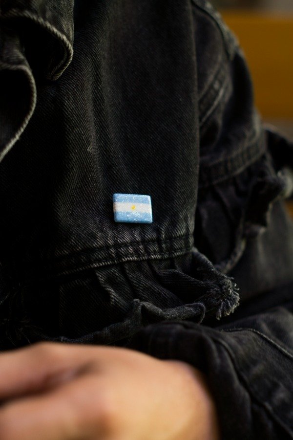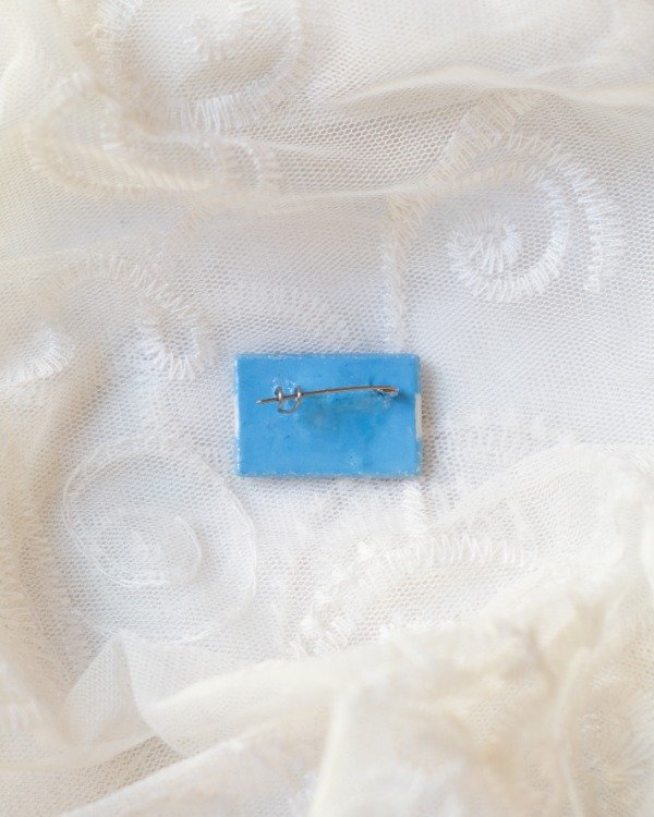 Prendedor modelado en porcelana fría, pintado y barnizado. Base de prendedor de acero quirúrgico
