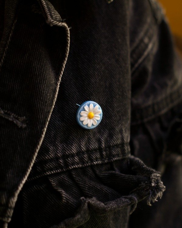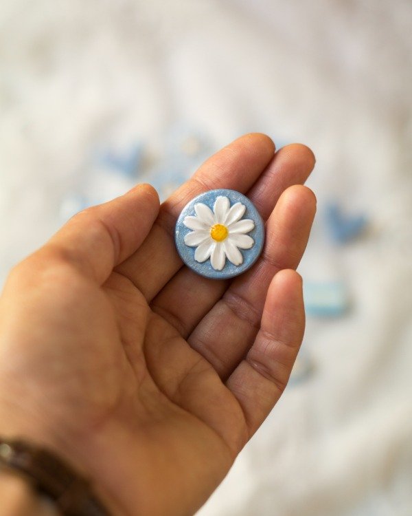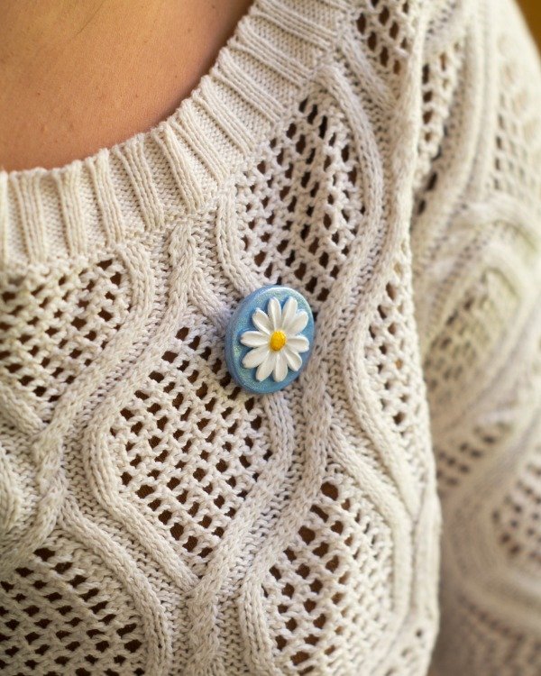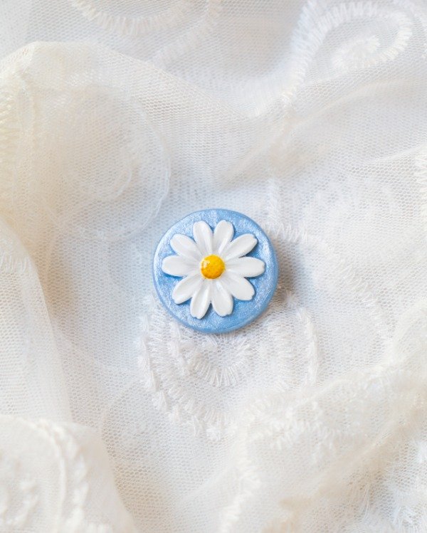 Prendedor modelado en porcelana fría, pintado y barnizado. Base de prendedor de acero quirúrgico